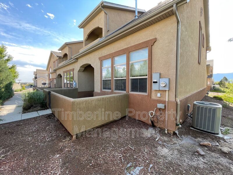 Wonderful corner townhouse in a spectacular location! You will love the location with easy access to I-25 and the North Gate of the Air Force Academy. The main level features a modern kitchen with granite accentuated by a large island/eating bar. Great room/family room with tall ceilings allow for plenty of natural light and a gas fireplace. The private large patio access is off of the dining room. Upstairs there are 3 bedrooms and full bathroom. The master is large with a full size walk in closet, gas fireplace, dual vanities and large standing shower area. Attached 2 car garage. You will love the newness and the vibrant community in the North part of Colorado Springs. Restaurants, shopping, theaters, all within easy walking distance. This is a rare find in the rental market.