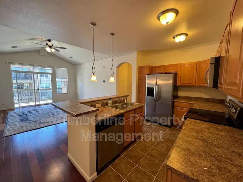 The home has beautiful LVP flooring placed throughout, large windows and high ceilings. The kitchen has plenty of cabinet for ideal storage. Overlooking the living room which features a gas fireplace which will be cozy for those cold Colorado nights, and access to a large private balcony. Home also comes with air conditioning.