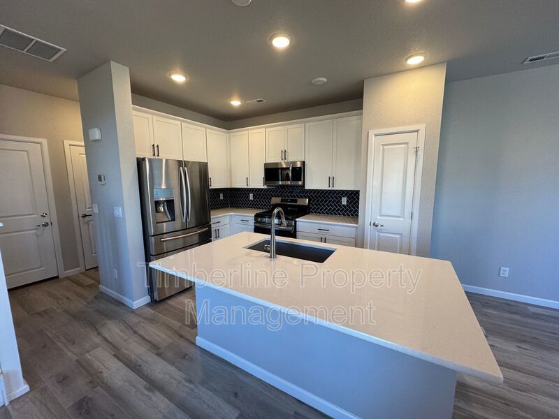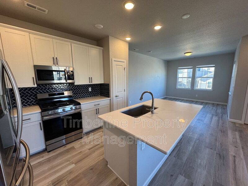 Welcome Home to this modern newer townhome located in the newest community of Wagon's West. This is a corner townhome that faces the gorgeous front range mountains leaving you with breath taking views. A few steps from the front porch you can step onto a small green belt perfect for a quick walk. The best part- the famous Santa Fe Trail is conveniently located across the street.