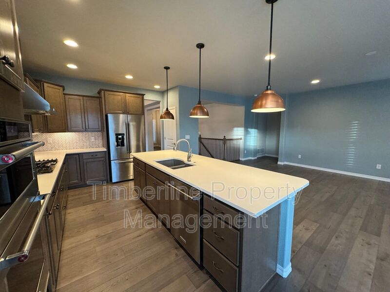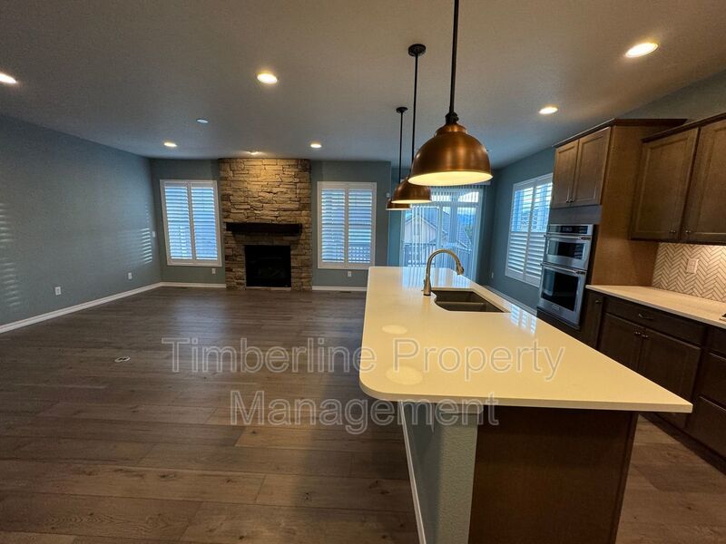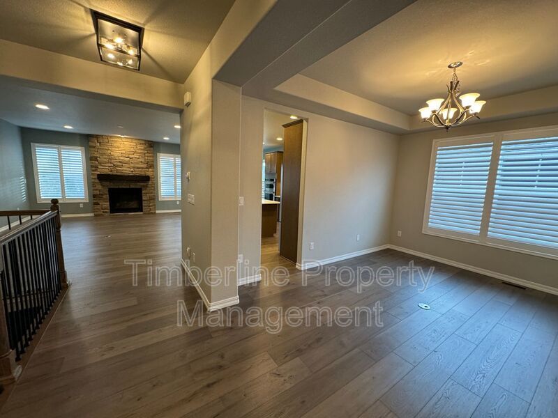 Right off the entry, you will find the first bedroom and full bathroom. Perfect for an office space or guest room. Formal dining area opens up to the gourmet kitchen featuring quartz countertops, stainless steel Kitchen Aid appliances, a beautiful hooded vent, pantry, and a generously sized island perfect for additional seating. Kitchen overlooks the family room which features a gas fireplace. Step onto the covered back deck and enjoy the views of the front range. Laundry and mud room are also located off the main entrance of the home. The 4 car tandem can actually fit 4 vehicles comfortably. The garage has been insulated and hot/cold water is present so you can work on projects comfortably throughout the year! Also located on the main level is the primary bedroom and bathroom. Gorgeous custom shutters throughout entire main level!